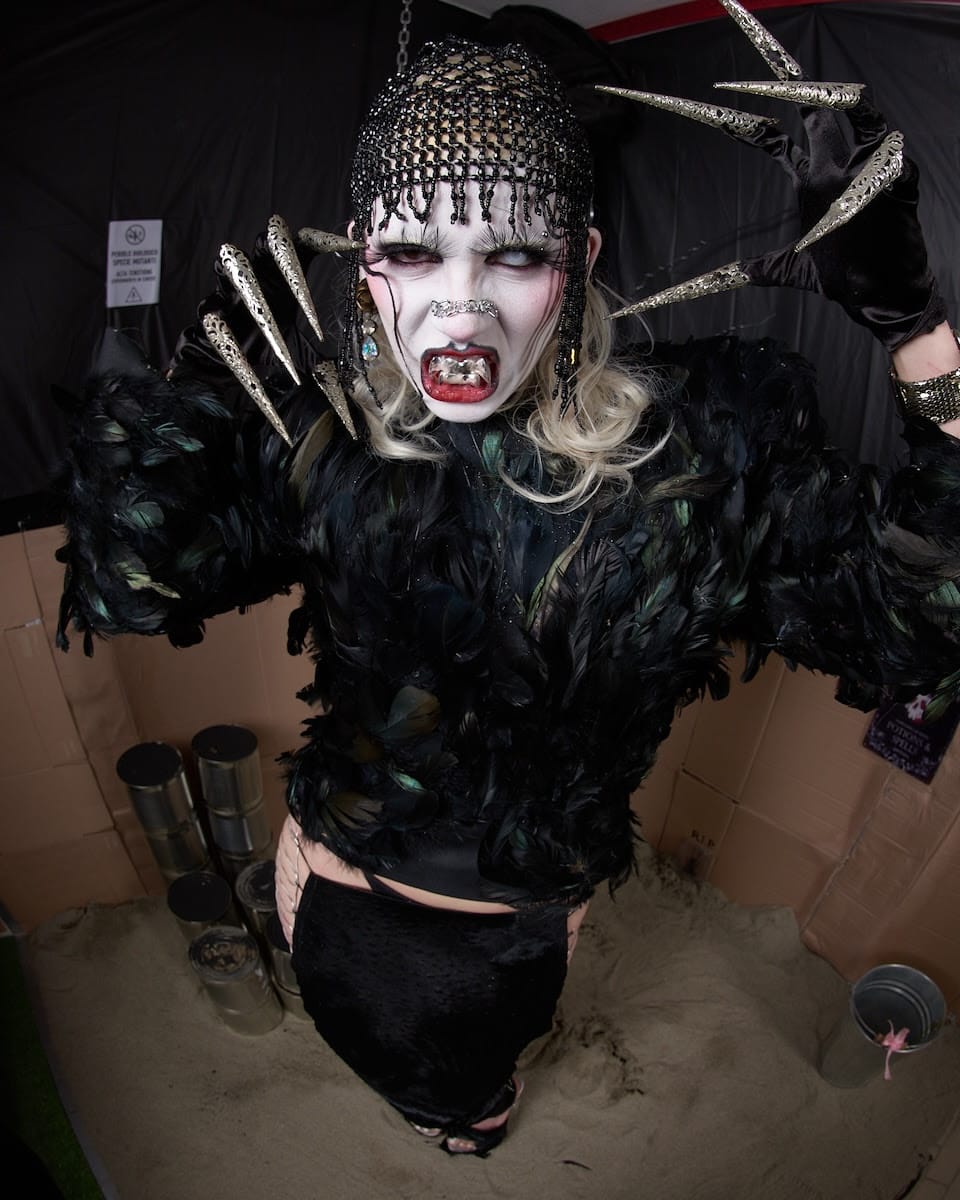 Answer: My project is born from friction and from emotional and visual impact. It is an exchange with the audience—it does not exist without the people who enter into it. Everything revolves around choice and taking a very human position. My motto is: “Do you throw the dice or just watch them?” That’s why I also create themed events beyond concerts, where people can truly enter the project and experience it as something immersive. There they can move through the imagery and live all its elements firsthand. It is not something that only exists behind a screen. Live, it becomes far more powerful and physical.